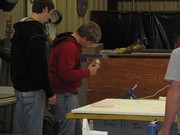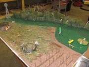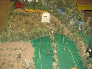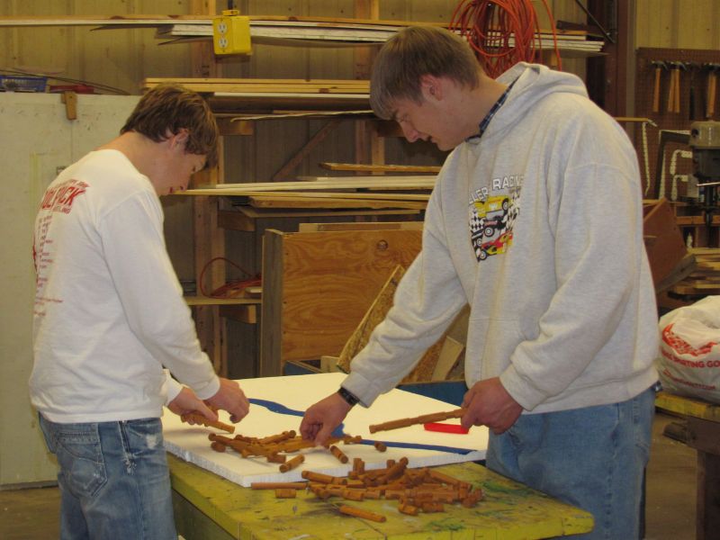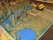 The Natural Resource classes have been busy creating a 3-D wildlife habitat models the past week in the Ag. Students from Elgin Public and Pope John are finishing the semester of class by creating a wildlife habitat model in 3-D. The class was given a satellite picture of 40 acres of land somewhere in Nebraska that included a couple of hills, some trees, a creek, cropland, and an old farmstead. The students were to take this land and make it a wildlife “paradise”. The land they created had to include habitat for five required species (deer, turkeys, squirrels, woodpecker, and yellow finches) and five other species found in Nebraska of their choice. The student’s could not alter the creek in anyway but they could change the way the road went and the placing of trees, homestead, and fields. To make it a wildlife paradise the students could add other elements to the model such as ponds, trails, or food plots. Materials that were provided to the students were the styrofoam base, paint and glue. All other materials had to be brought in by the students. Students got creative and brought natural vegetation in from outside, brought toy figures and building blocks from home and some even went so far as to buy animal and structure pieces!