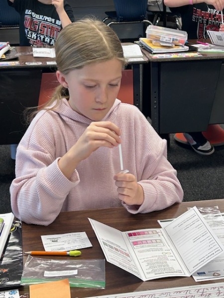 The third graders enjoyed a visit from Amy Latzel with the North Central District Health Department. Students learned about the importance of water quality and how it impacts our environment. They collected water samples from home prior to her visit. During the project, they learned about nitrates, nitrites, and phosphates. The third graders discovered why nitrates are important to farmers and also how too much can be a problem. They were able to test their own water samples with testing strips for nitrate, nitrite, and phosphate. It was a great learning experience that inspired the class to help take care of our environment.